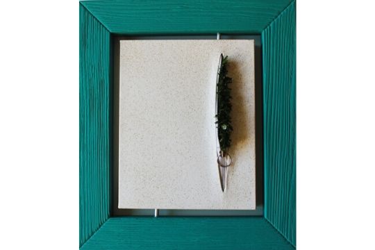 Tra tutti gli artisti affascinanti che ho studiato uno in particolare mi ha colpito ed è Lucio Fontana, da cui ho tratto molta ispirazione. I suoi tagli e i suoi buchi mi hanno aperto una nuova visione di arte. La parola che ho sempre visto guardando quei tagli è OLTRE, il guardare oltre la superficialità, alle cose che a volte ci sfuggono o che sono nascoste. Infatti ho inserito l'elemento della CERNIERA che va a dare un pò di dinamismo e lascia libero l'osservatore di poterla immaginare mentre si chiude o mentre si apre, e in più ho aggiunto elementi (come bottoni, catene, cordine, pellicole, erba finta, ecc..) che lasciano un voluto messaggio sulle tematiche più ricorrenti oggi come il cambiamento climatico, l'inquinamento degli oceani e il pregiudizio sul genere femminile che mi è sempre stato a cuore come tema.
