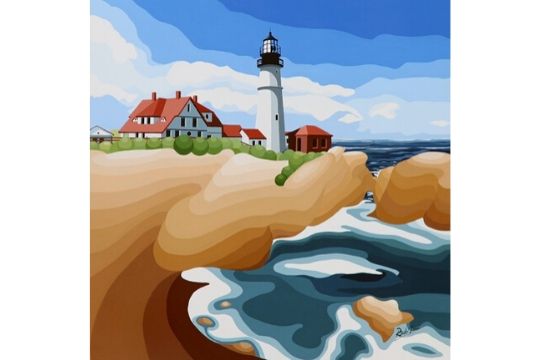 Il faro - omaggio ad Hopper - Tecnica: Acrilico su tela - Dimensioni: cm 40 x 40 - Prezzo: € 640.00