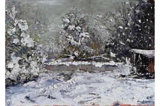 Sotto la neve - Tecnica: Olio su cartone - Dimensioni: cm 70 x 50