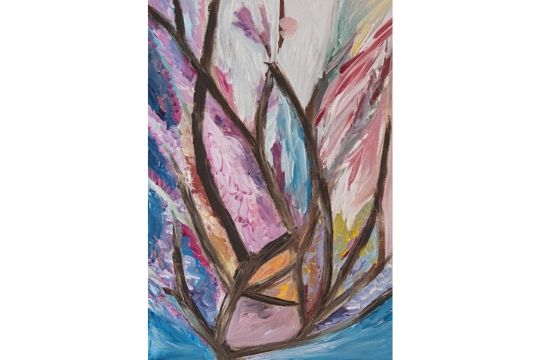 E proprio sull’immediatezza e l’istintività si basa la pittura di Margherita Tessier: pennellate fluide e calde ricoprono la tela dando forma a composizioni floreali.